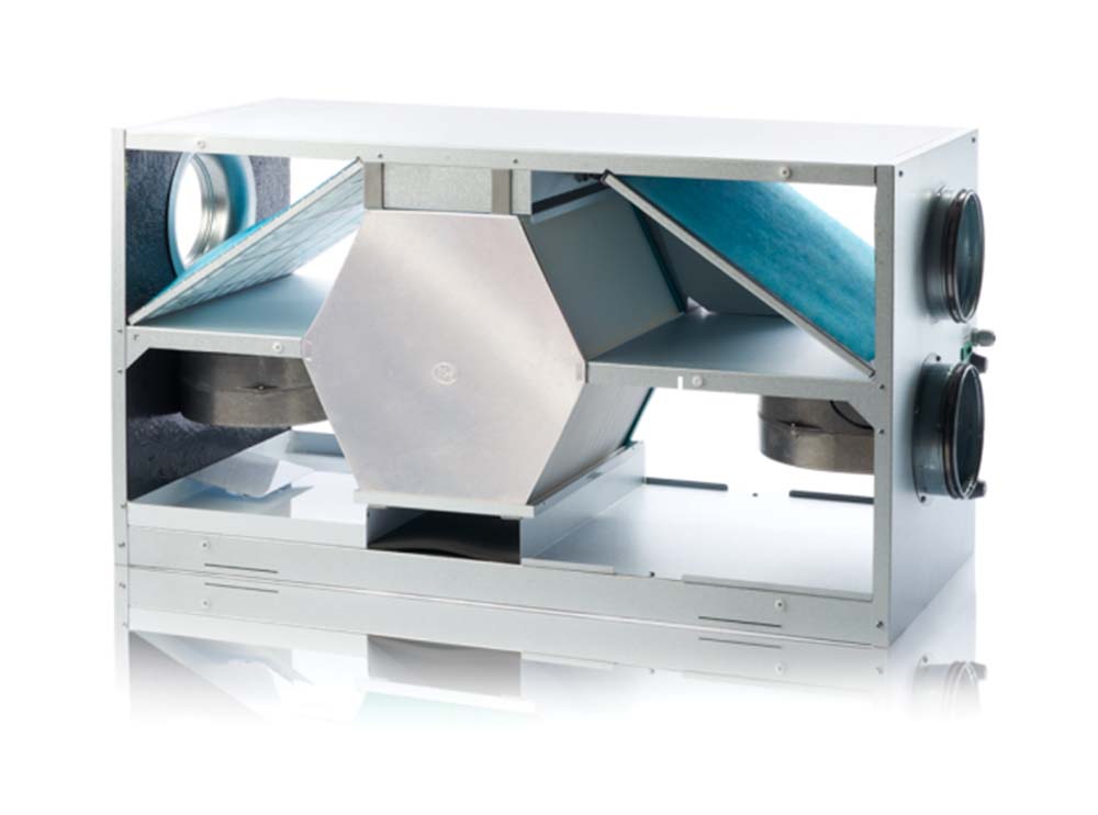 Anlæg af typen Nilan Comfort 300 er højeffektive varmegenvindingsanlæg med et lavt energiforbrug. Anlæggene suger den fugtige luft ud fra køkken og badeværelse og benytter energien herfra til at opvarme den luft, der blæses ind i opholdsrum. Filteret sørger for at du får en renere luft med færre partikler, og det mindsker eventuelle gener fra pollenallergi.